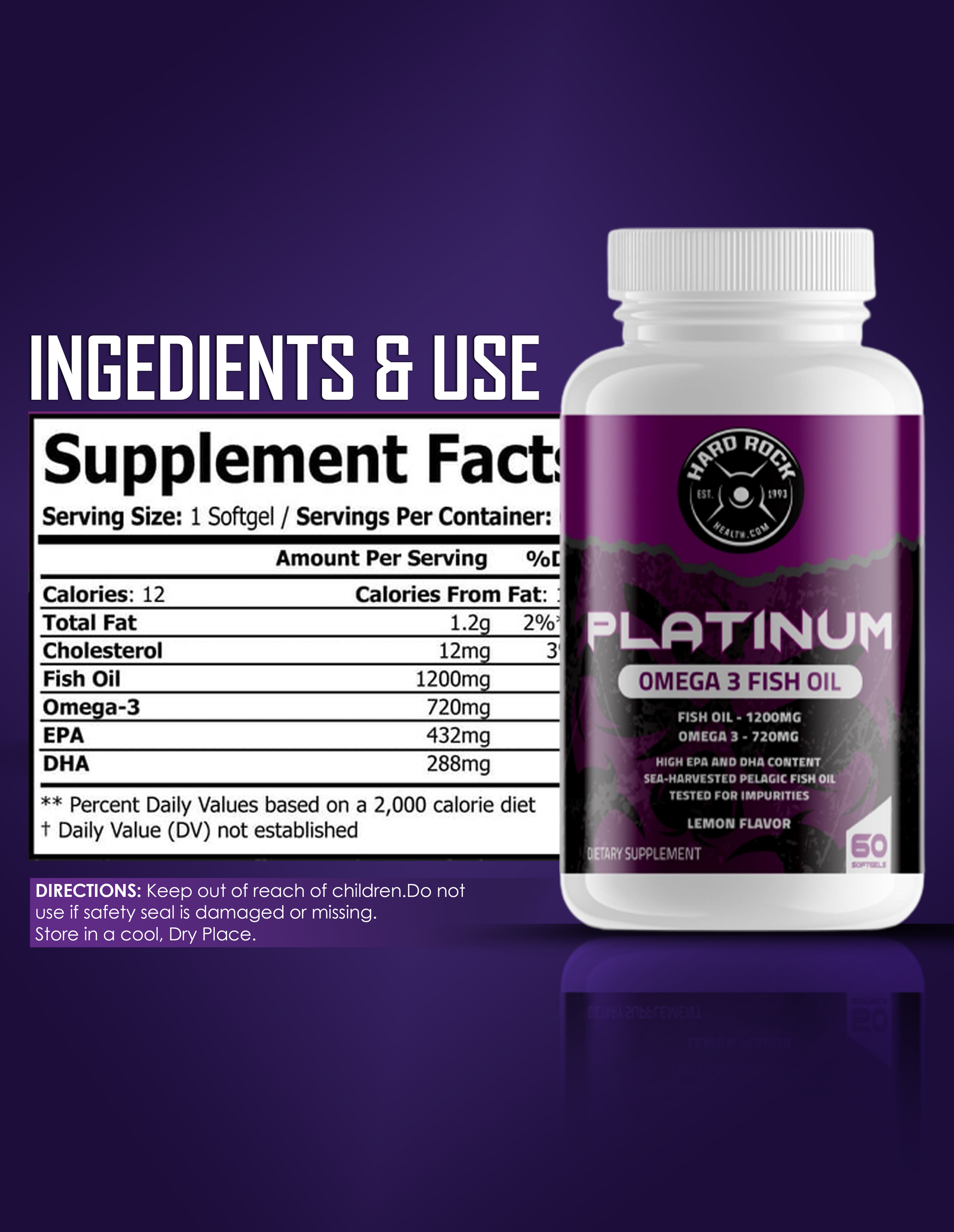 EPA & DHA are the two important components of Omega 3 Fish Oil by Hard Rock Health