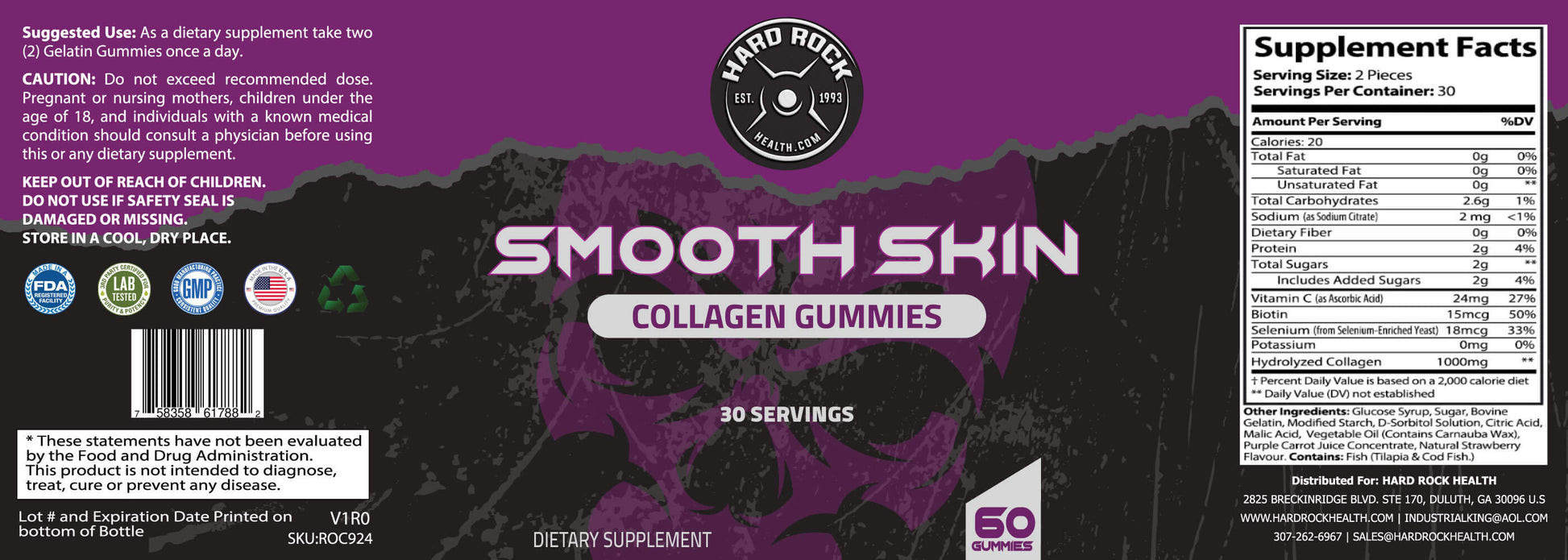 Because one of the active components that helps rejuvenate skin from pollution, Hard Rock Health Smooth Skin Collagen Gummies are ideal for toning your face whether you are feeling your years or dealing with the bothersome outdoors in city life.